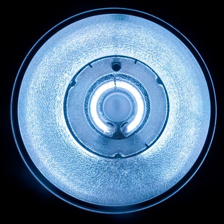 Close up photography studio equipment. Flash bulb and modeling light with beauty dish light modificator.