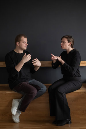 A man and a woman are talking in Russian sign language