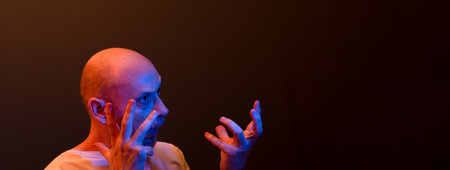 Angry man expressing anger in dark backround. dramatic lights. Being attacked