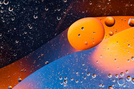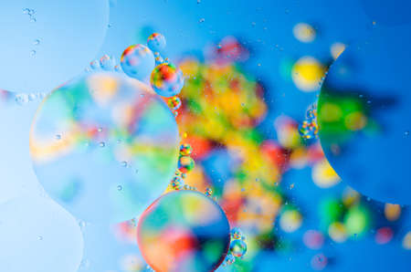 Abstract background with vibrant colors. Oil drops in water. Close colorful and artistic bubbles. Space pattern.