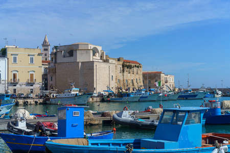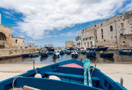Old port of Monopoli province of Bari, region of Apulia, southern Italy. Boats in the marina of Monopoli