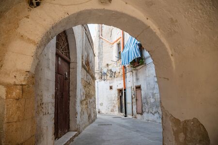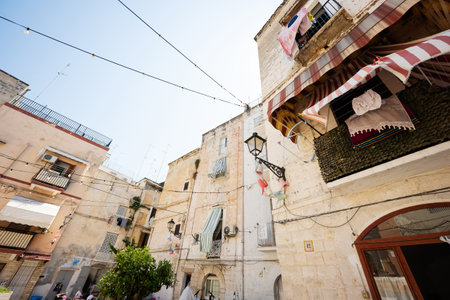Bari,Puglia,Italy.August 2021.The historic center,called Bari vecchia,is the main tourist attraction: the atmosphere of the place fascinates with the stone-paved streets and houses with narrow streets