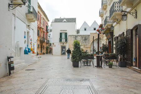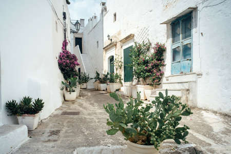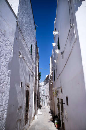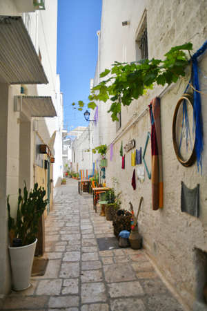 Ostuni, Puglia Italy - Friday 23 August 2019: view of an alley in the old city