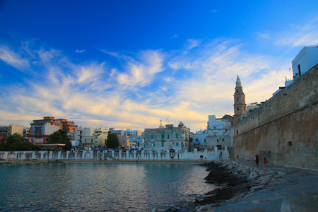 View of the bay of the tourist Italian village of Monopoli, with Bastione di Babula.