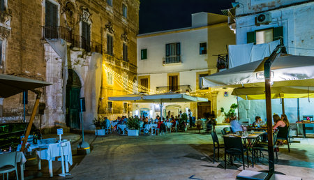MONOPOLI, ITALY - SEP 2, 2020: Street night view of Monopoli old town, Apulia, Italy.