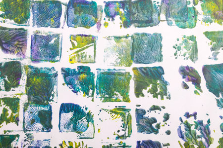 blue green yellow abstract acrylic painting color texture on white paper background by using rorschach inkblot method