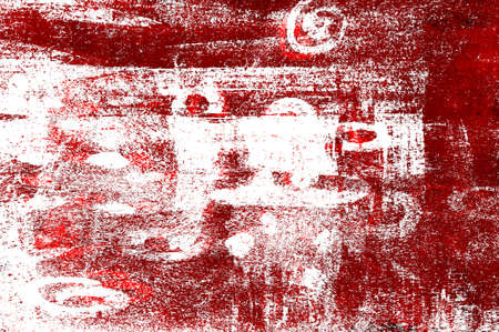 Red Black White Aged Grunge Wall Background. Old Weathered Peeled Painted Plaster Backdrop. Reddish Abstract Antique Cracked Stain Texture Background. Damaged Retro Stucco Scratched Pattern