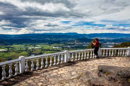 Young woman at a viewpoint over the beautiful Sopo valley at the department of Cundinamarca in Colombia