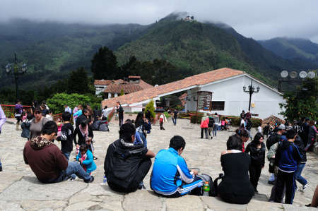 BOGOTA, COLOMBIA, JANUARY - 2015 - Lots of people at Monserrate Hill, where is located the Basilica of the Lord of Monserrate, a place of religious pilgrimage