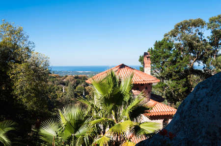 Scenic landscape at Monseraty park with beautiful house, Cintra, Portugal