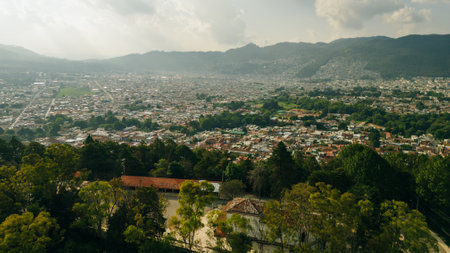 Beautiful aerial view of the rooftops of the old colonial buildings in the city of san cristobal de las Casas,. high quality photo