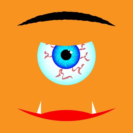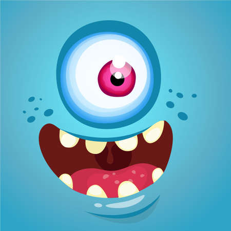 Cartoon monster face. Vector Halloween blue monster with one eye