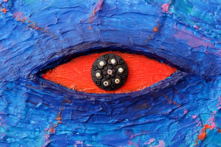 Eyes on yellow artificial fur. Eyes in a humorous style on a yellow background.