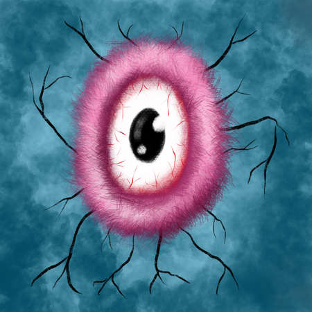 Weird Hairy Eyeball Monster Alien Character Cartoon Illustration for Children's Stories