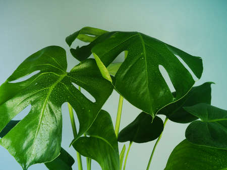 Close up of Real monstera leaves at home, indoor houseplant