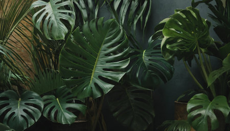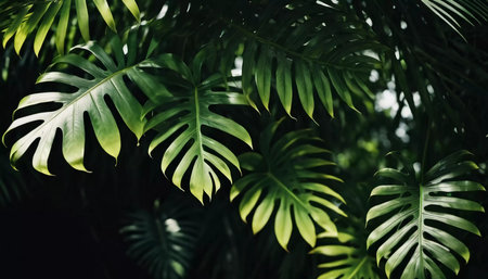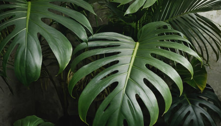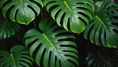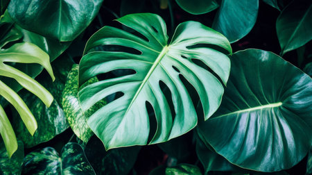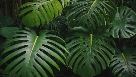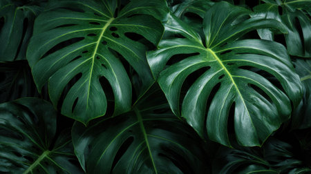 Lush green monstera leaves pattern nature background