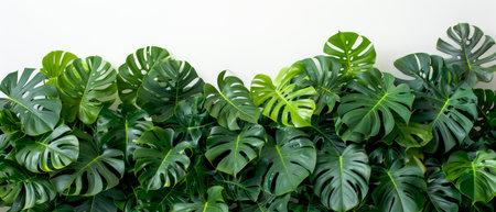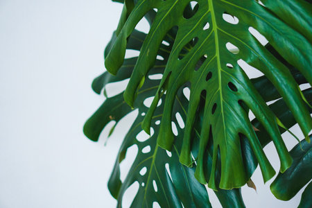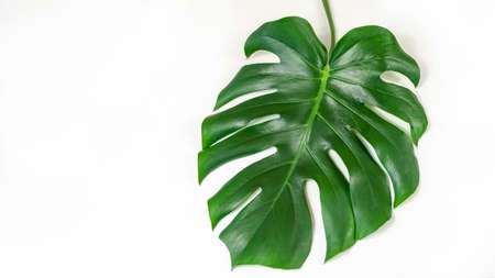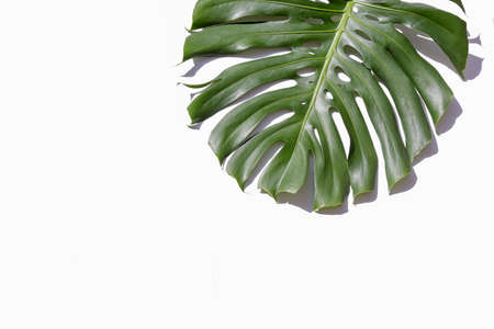 Monstera green big leaves on white background Copy space