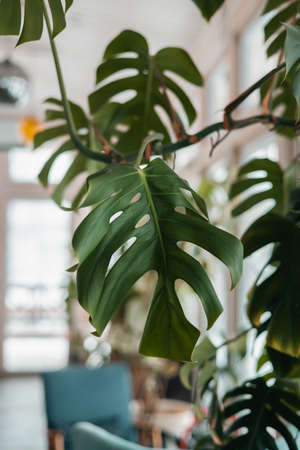 Monstera deliciosa tropical leaves in the office building