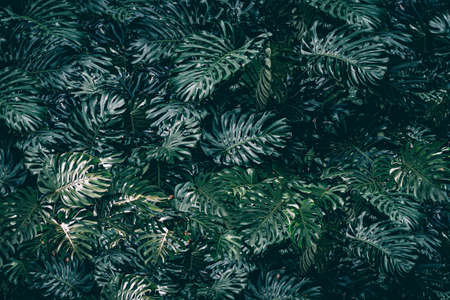 Tropical dark green leaves nature concepts background .