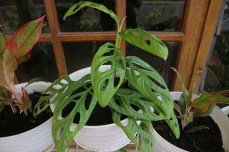 Window-leaf , Monstera obliqua in pot , indoor tree in Living Room