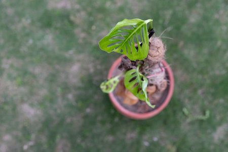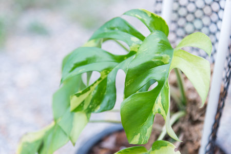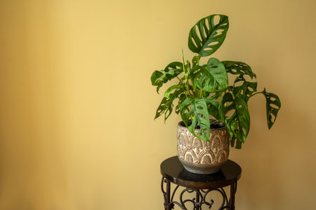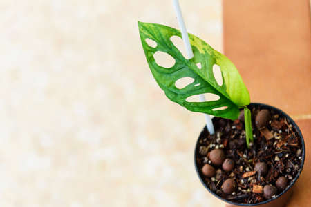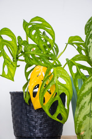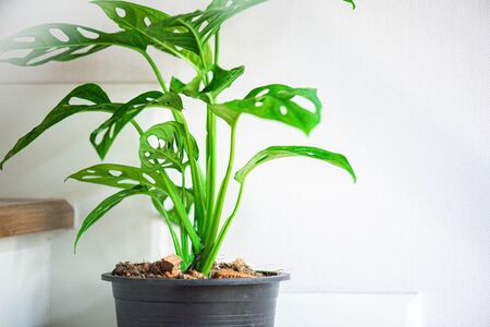 Monstera Swiss cheese plant or Monstera Monkey Mask in flower pot. Nice tropical Monstera Swiss cheese home plant