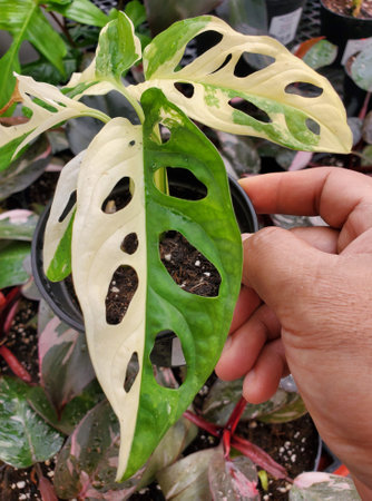 monstera thai constellation or Monstera, Herricane plant or Swiss cheese plant