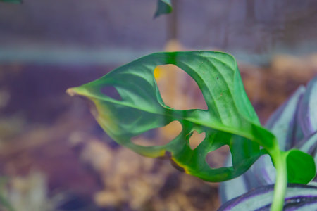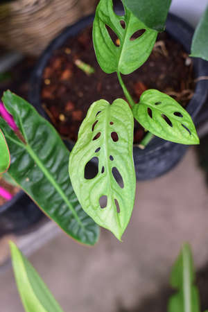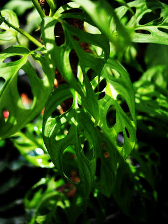 Monstera Acuminata, Monstera Adansonii or Monstera Obliqua plant closeup