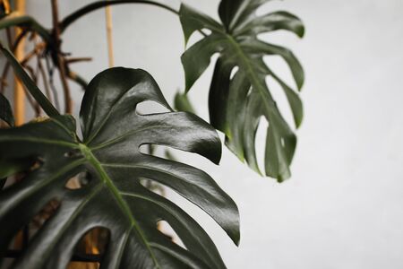 Tropical leaves of monstera plant. Fashion concept, minimalism and surrealism