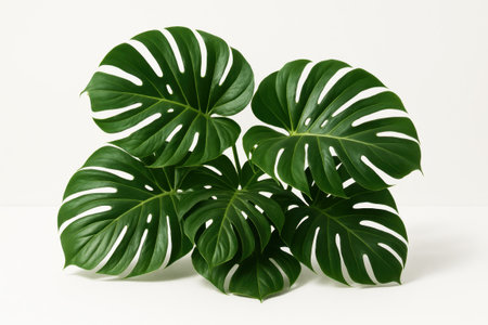 Abstract tropical green leaves pattern on white background, lush foliage plant bush of Monstera (Monstera deliciosa) the tropic popular houseplant.