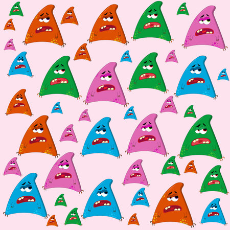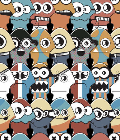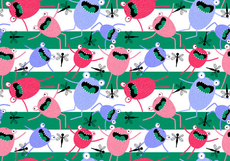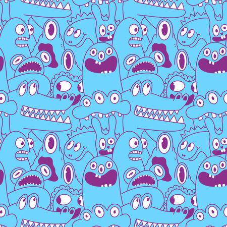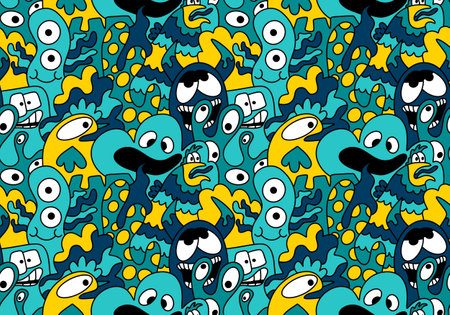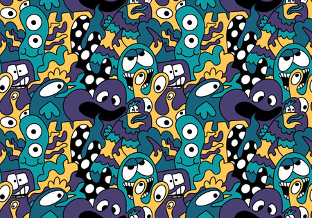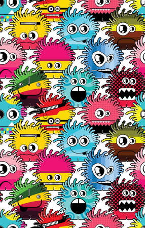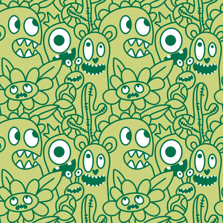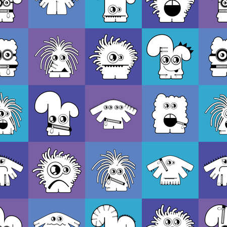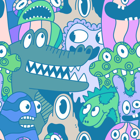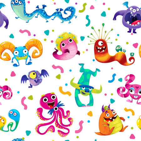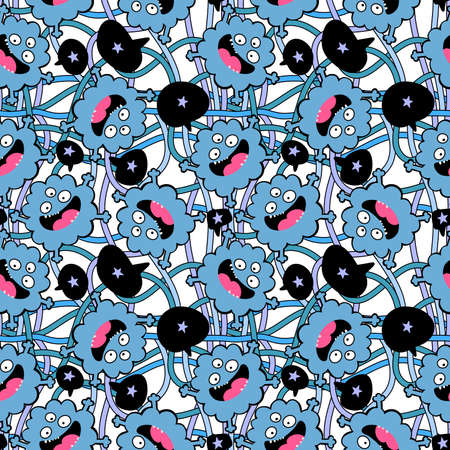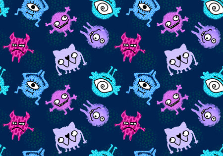 endless pattern with monsters, funny cartoon monsters, mutants, comoc childish illustration