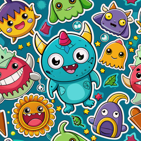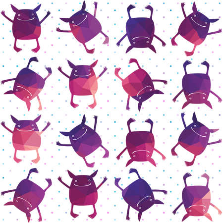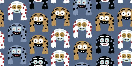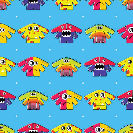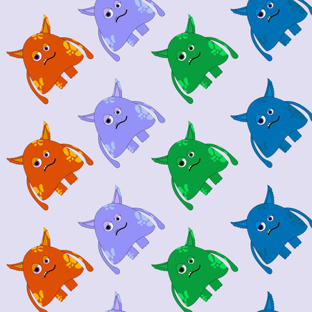 Cute seamless pattern with a jolly smiley monsters