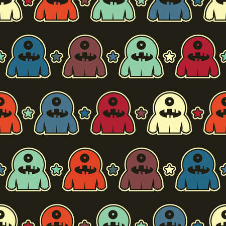 Cartoon monsters aliens seamless kids emoticons pattern for wrapping paper and festive accessories and school notebooks and fabrics and Halloween. high quality illustration