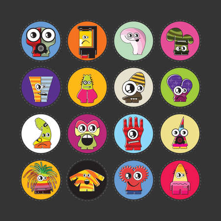 Vector set of cartoon cute funny Colorful monsters