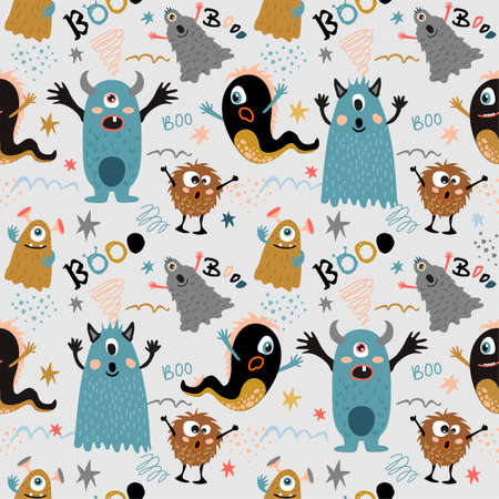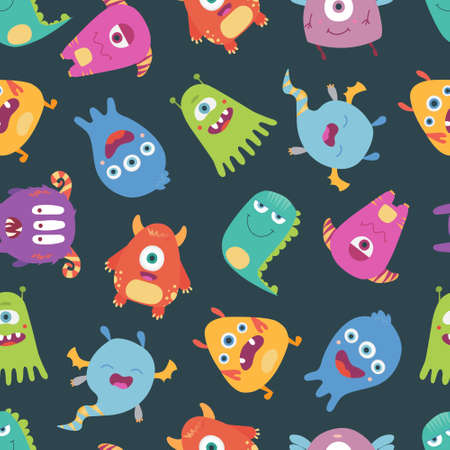 Colorful vector seamless pattern with funny monsters. Cute endless background
