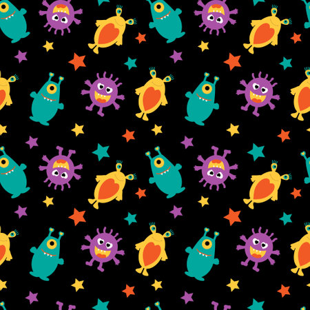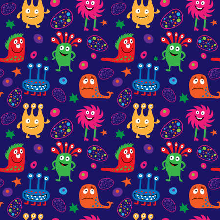 Kids seamless aliens monsters pattern for textiles and packaging and gifts and cards and linens and wrapping paper