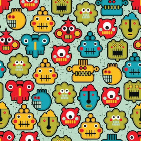 Robot and monsters cute faces seamless pattern. Vector texture.