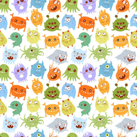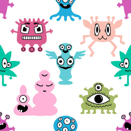 Cartoon monsters seamless emoticons aliens pattern for kids clothes print and wrapping paper and fabrics and linens and kindergarten. high quality illustration