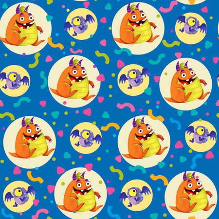 cute seamless pattern with monsters, childish illustration, baby design