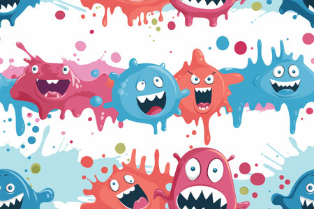 Seamless pattern with little angry viruses and monsters.