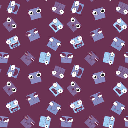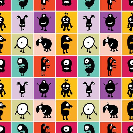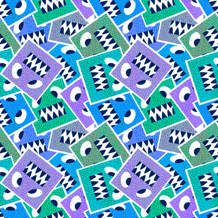 Square monsters seamless cartoon kids pattern for clothes print and wrapping paper and accessories and fabrics and hobbies and school. high quality illustration