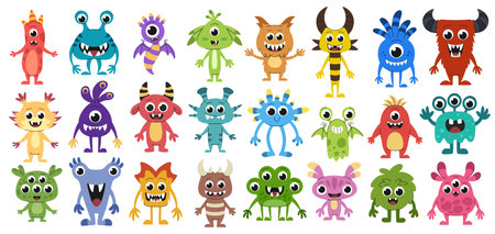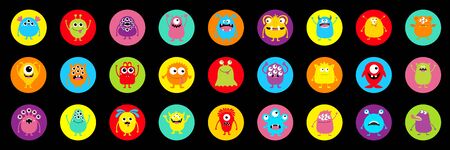 Cute cartoon monsters for halloween big set. Collection of fantasy creatures or aliens.
