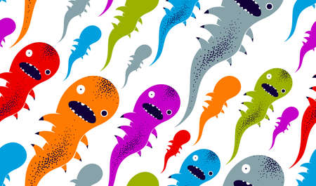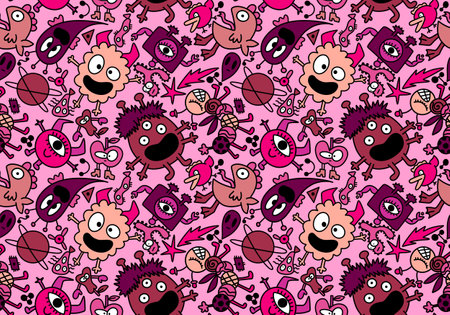 Seamless background with cartoon doodle germs, viruses and bacteria's monsters. Can be used for wallpaper, pattern fills, textile, web page background, surface textures.