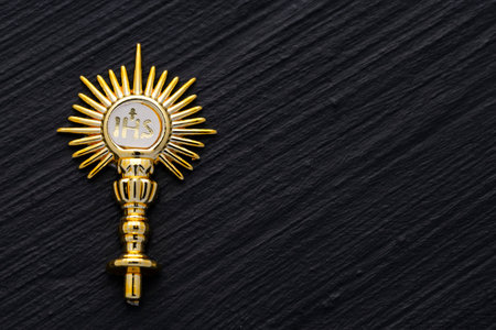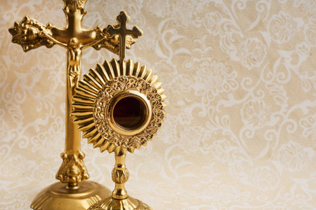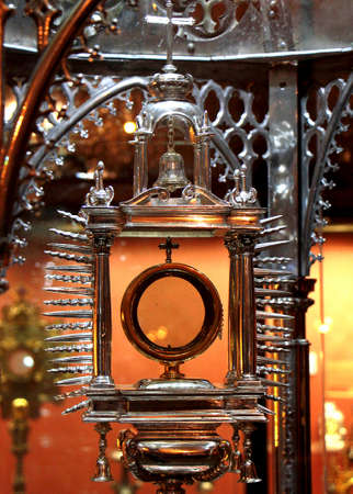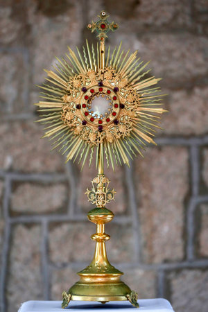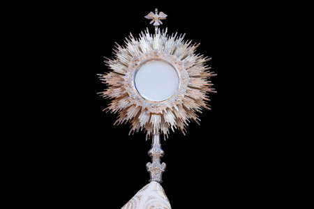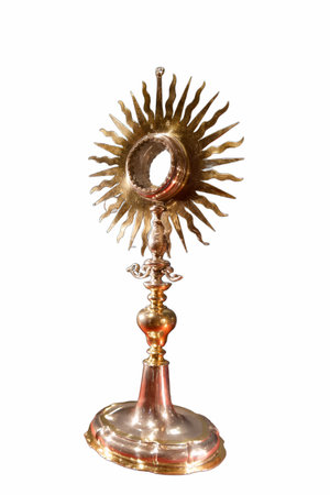 Ostensory for worship for Catholic church ceremony. Corpus christi.