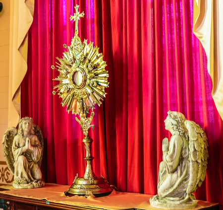 Church of the Sacred Heart of Jesus (Nha Tho Tan Dinh). Monstrance. Adoration of the Blessed Sacrament. Ho Chi Minh city. Vietnam.