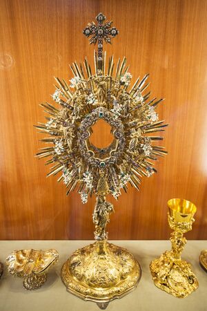 Ostensory for worship at a Catholic church ceremony - Adoration to the Blessed Sacrament - Catholic Church - Eucharistic Holy Hour - Holy Week