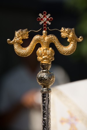romanian Orthodox archbishop's crosier, with serpents representing the staff of Moses