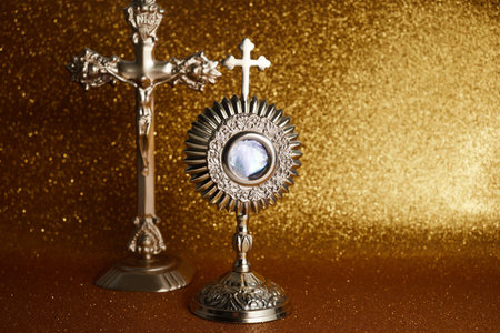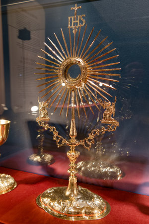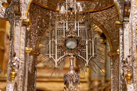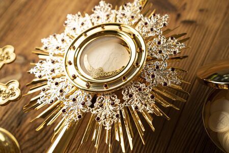 Ostensory for worship at a Catholic church ceremony - Adoration to the Blessed Sacrament, Catholic Church, Eucharistic Holy Hour, Holy Week