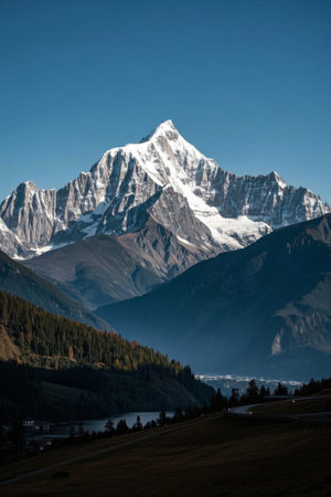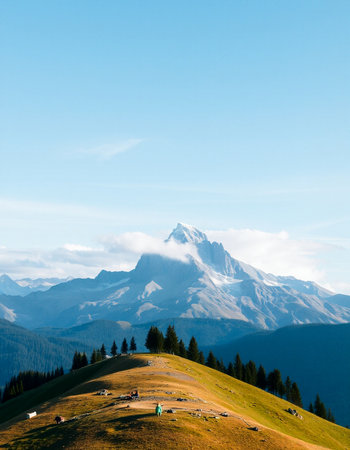 Discover the breathtaking beauty of a serene mountain landscape filled with lush greenery under a clear blue sky. Perfect for outdoor and nature enthusiasts.