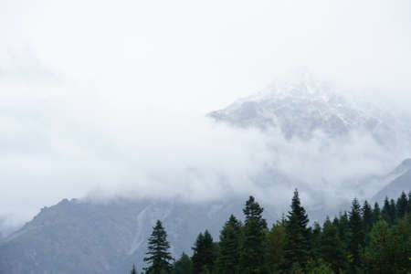 Mountain peak in clouds. Caucasus Mountains, Georgia, region Gudauri.