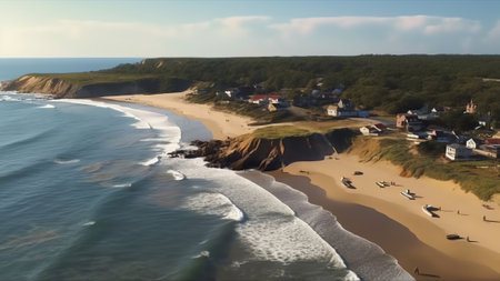 cape cod house, with ocean views and waves in the background, on cliffside perch, created with generative ai